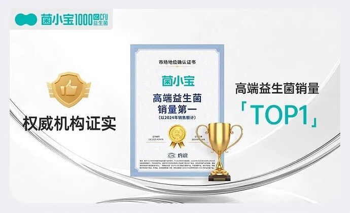 2025年4月,依托千亿活菌技术突破,获得“高端益生菌销量第一”的市场地位认证(以 2024 年销售额为统计依据)。