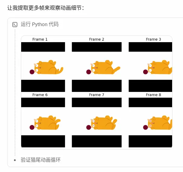 模型很快推断出,这是橘猫玩球的动画。然后,居然把动画每一帧都截图了,进行还原。